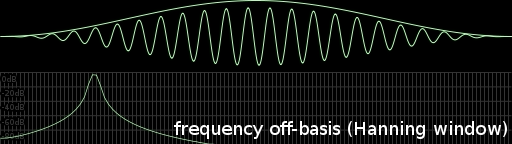 The usual way of controlling energy leakage from 'imperfect' signals is to window the input signal using a function that itself shows low energy leakage; the effect of a Hanning window is shown here. This practice is effective at controlling but not eliminating energy leakage.