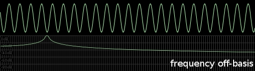 Even neat, perfect sinusoids can run into representational trouble in the frequency domain. Sinusoids that are modulated in amplitude and/or frequency, or sinusoids that fall between bins (do not match one of the basis frequencies exactly) also become spread out across the entire frequency spectrum. Most of this energy spray is low energy, but collected in its entirety it is not negligible. Discarding this 'long tail' of leaked frequency-domain energy is responsible for the artifacts we hear in transform codecs.